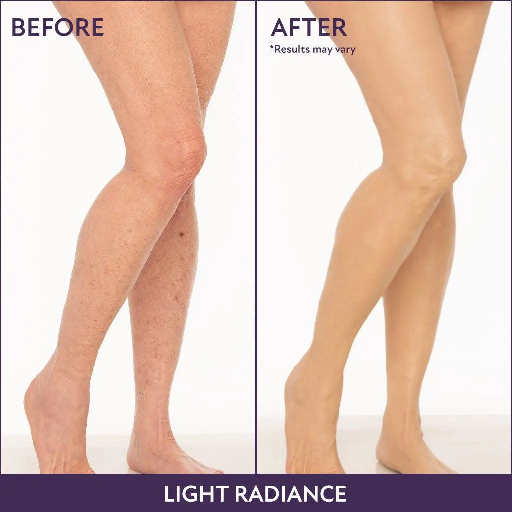 No, this is not your typical body makeup! Body Coverage Perfector is a lightweight, easy-to-blend formula that layers beautifully if you need fuller coverage. It dries down to a weightless, skin-like finish — leaving behind a perfected yet natural-looking glow.